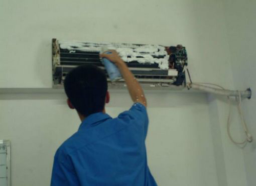 | 东明空调维修师傅给东明用户上门维修清洗空调。 |